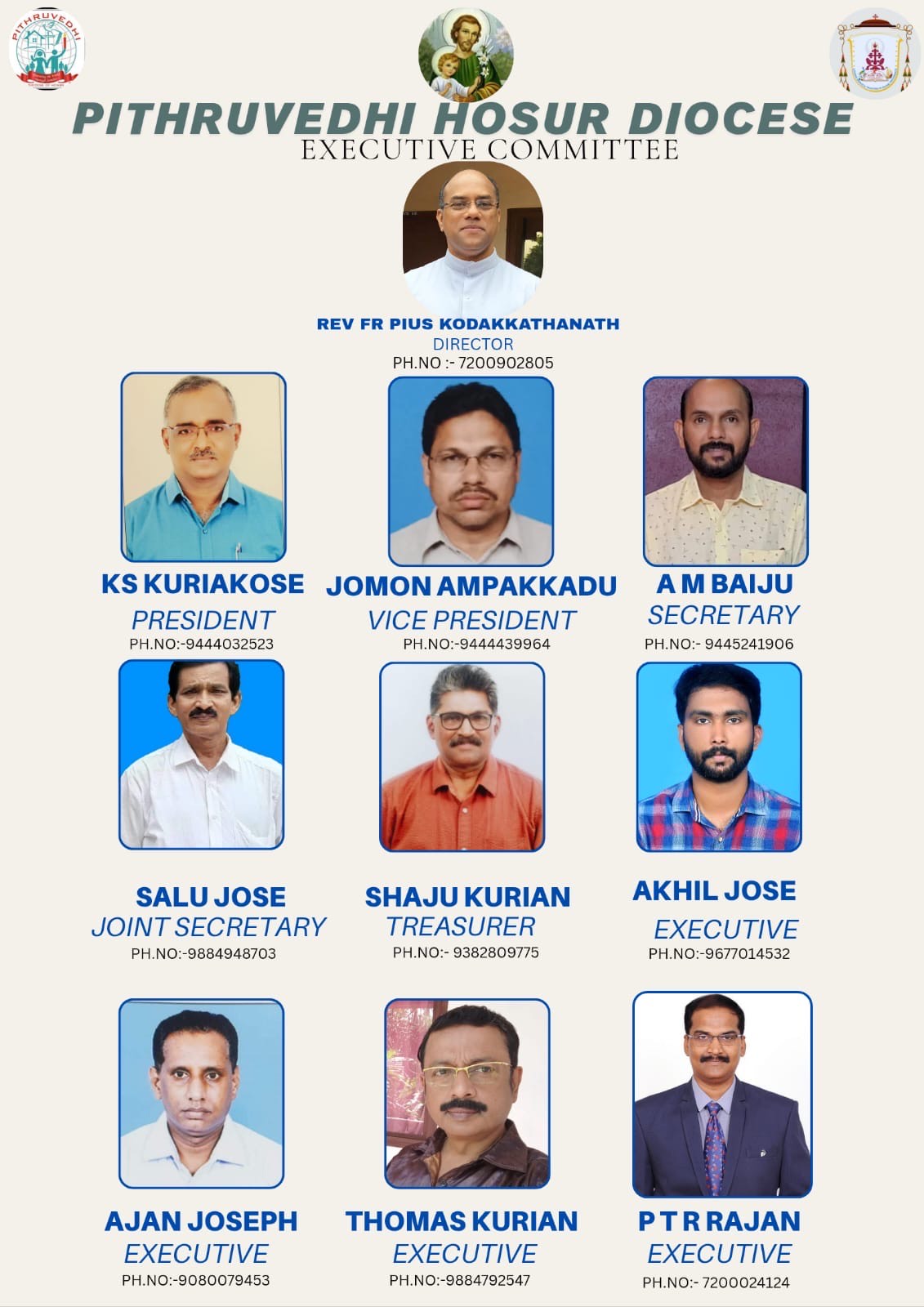 | Bishop | Mar Sebastian Pozholiparambil | 9840872044 |